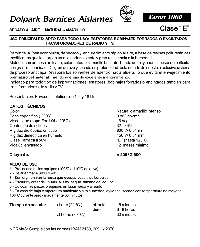 Varnix 1000 - Dolpark - Barnices Aislantes